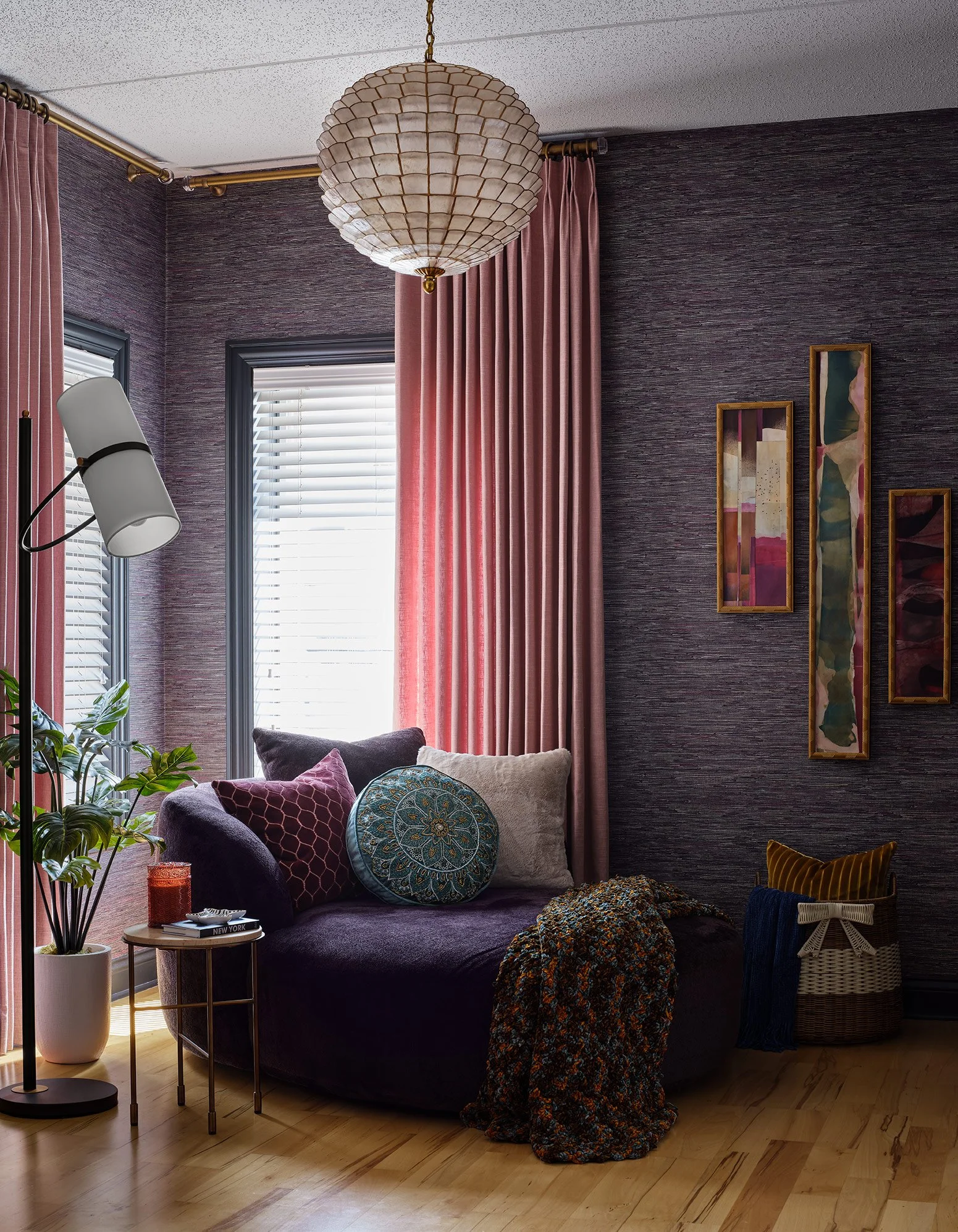 Match function: energizing, colorful work for active spaces; calming, muted pieces for bedrooms.